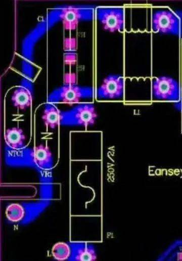 留意这儿稳妥丝之后,接压敏电阻VR1再接x2电容的走线,完全是绕了一个弯这是为什么?